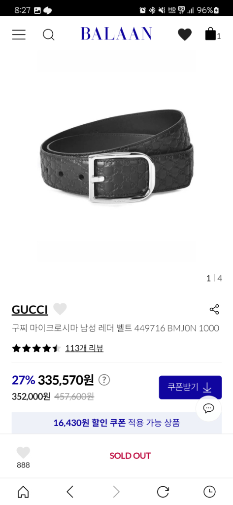 개인정보(거래정보)를 주고받는 행위는 사기에 노출될 수 있으므로 즉시 중고나라로 신고해 주세요구찌 마이크로시마 벨트 사이즈 100 발란에서 구매했습니다. 구매시기는 23년 4월에 구매했어요 거의 착용하지 않아서 새제품같아요