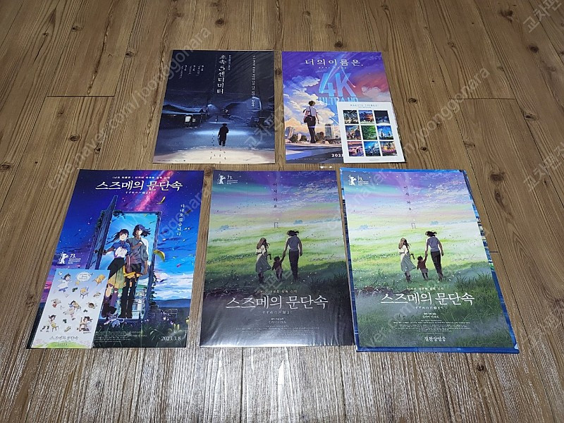 ※ 카페 상품 게시글은 자동으로 중고나라 앱/사이트에 노출합니다. 노출을 원하지 않으실 경우 고객센터로 문의 바랍니다. ※ 등록한 게시글이 회원의 신고를 받거나 이상거래로 모니터링 될 경우 중고나라 사기통합조회 DB로 수집/활용될 수 있습니다. ─────────────────── 📢 제목에 "제조사/ 브랜드 명"과 "티켓명(ex. 스타벅스 아메리카노 Tall) ”을 넣어 작성하면, 보다 빠른 판매가 가능합니다! 📢 게시글 작성 시 배송 방법에 “직거래”와 “내 위치” 설정할 경우, 보다 빠른 판매가 가능합니다! 2월 한정으로 기존 가격에서 쿨거래 또는 직거래 하시는 경우 추가할인 들어갑니다!! 거래 방법 별로 최소 2만원 할인에서 최대 3만원 할인까지 추가할인 많이 많이 해드려요! ☆ 초속5센티미터 / 너의이름은 4K 울트라 / 스즈메의 문단속 (메인+어서와요) A3 포스터 5종세트 / 12만원 ★ 2월 한정 추가 할인 ★ 쿨거래시 / 10만원 (2만원 할인) 직거래시 / 9만원 (3만원 할인) < 초속5센티미터> 메인 A3 포스터 <너의이름은> 4K 울트라 + 스탬프엽서 <스즈메의 문단속> 메인 포스터 + 스티커 <스즈메의 문단속> '어서와요' PET A3 포스터 <스즈메의 문단속> '어서와요' A3 포스터 + '문' A3 L홀더 직거래 / 택배거래 둘다 가능해요! 직거래는 서울에서 가능하고, 제가 사는 지역까지 오실 수 있으면 가능해요! 택배거래로 하시면 배송비는 별도 추가됩니다! (착불로 하셔도 상관없어요!)