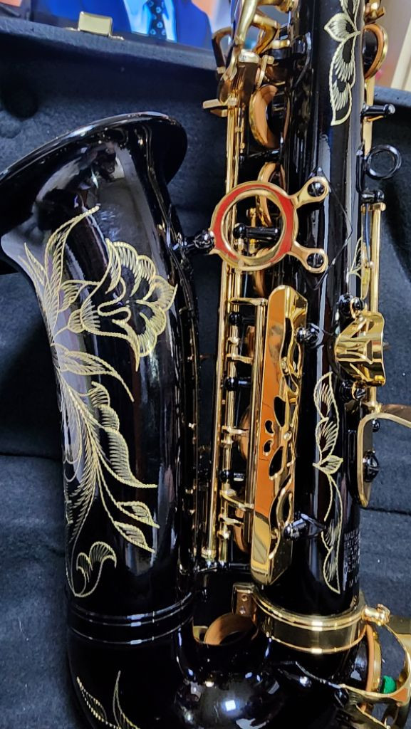 한달전에 선물받은 새 셀마 알토색소폰 입니다 미관이 아름답고 소리가 부드럽게 잘납니다 배울시간 없어 그냥 보관만 하고 있습니다 ㅡ 싸게 내놓습니다