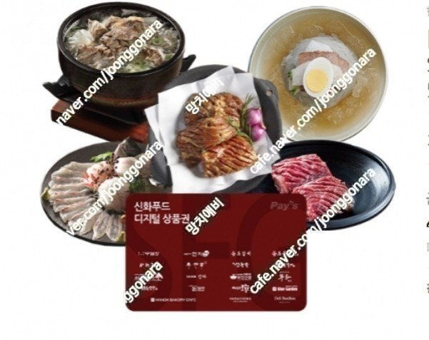 SFG신화푸드5만금액권/상품권(잔액관리가능) 장당-43500원 기간-24년 4월 15일 (현금성 상품이라 꼭!! 안전번호로 연락주세요) 바코드랑 잔액조회 전송드려요 네고 문의는 사절입니다 천지연, 송도갈비,우설화,델리봉봉, 서현궁, 동백궁, 청담본갈비,산삼청각, 소나무향기, 하누선수, 긴자, 취홍, 하인선생, 돈블랑, 블루가든, 한옥베이커리카페, 송도불고기, 바다요리모슬포, 바다쏭