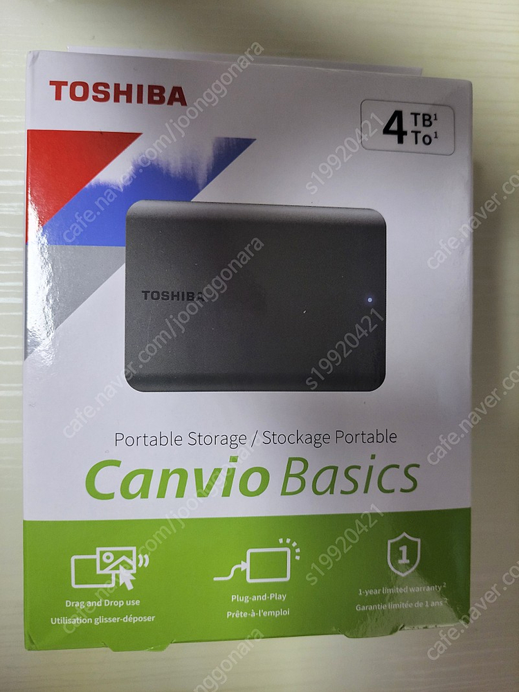 ※ 카페 상품 게시글은 자동으로 중고나라 앱/사이트에 노출합니다. 노출을 원하지 않으실 경우 고객센터로 문의 바랍니다. ※ 등록한 게시글이 회원의 신고를 받거나 이상거래로 모니터링 될 경우 중고나라 사기통합조회 DB로 수집/활용될 수 있습니다. ─────────────────── 📢 제목에 "제조사/ 브랜드 명"과 "상품명(ex. 맥북 에어 13)”를 넣어 작성하면, 보다 빠른 판매가 가능합니다! 📢 게시글 작성 시 배송 방법에 “직거래”와 “내 위치” 설정할 경우, 보다 빠른 판매가 가능합니다! Toshiba 칸비오 베이직 4TB 외장하드 (HDTB540XK3CA) 미개봉 새상품입니다 제조회사 : 도시바 제조년월 : 2022년 12월 제품 분류 : 외장 HDD 디스크 크기 : 6.4cm(2.5인치) 디스크 용량 : 4TB PC인터페이스 : USB3.2 , PC연결 단자 : Type A, 저장장치 단자 : Micro B 디스크 인터페이스 : SATA 전원 USB전원 A/S 정보 : 3년 가격은 직거래 85,000원, 택배거래시 90,000원에 판매합니다. 직거래는 홍제역, 녹번역에서 가능합니다. 문의사항이 있으시면 문자나 쪽지 부탁드리겠습니다.