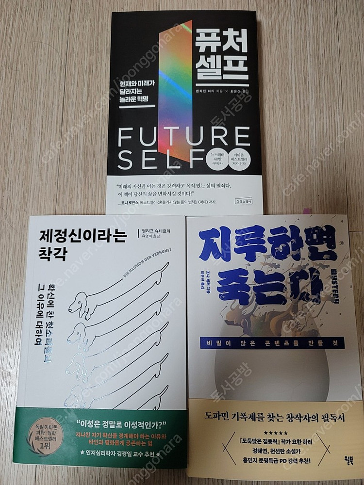 개인정보(거래정보)를 주고받는 행위는 사기에 노출될 수 있으므로 즉시 중고나라로 신고해 주세요1. 퓨처 셀프 - 벤저민 하디 2. 제정신이라는 착각 - 필리프 슈테르처 3. 지루하면 죽는다 - 조나 레러 신간 인문 교양 베스트셀러로 구입하여 깨끗하게 읽었습니다. 택포 가격입니다.