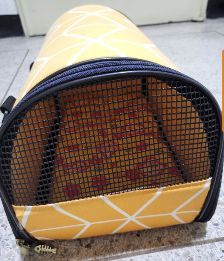 강아지 이동가방입니다. 사이즈는 35 × 25 × 25입니다. 실내에 쿠션있습니다. 스트랩조절가능합니다.