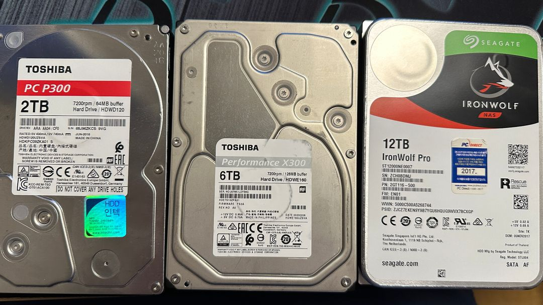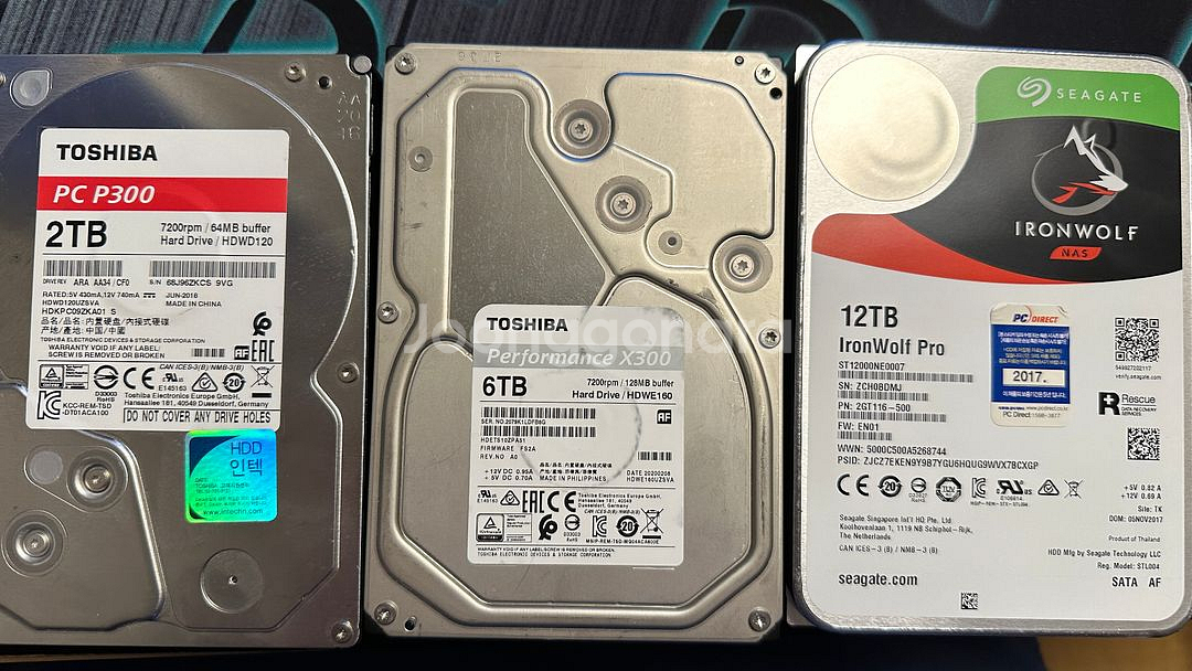 하드디스크 12, 6, 2 tb 함께 팝니다~ 사용은 꽤나 했지만 이상 증상 없는 제품들입니다. 판매 등록 전에 사용했을 때 아무 이상 없었구요 직거래는 수원, 화성, 오산에서 가능합니다. 편하게 연락주세요