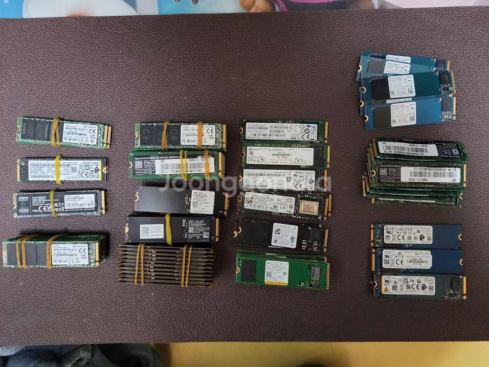 구매전 반드시 종류와 수량 이야기 해주시고 가격 변경후 결제해 주셔야 합니다. 중고나라에 등록된 주소지로 보내드리는데 다른 주소로 받으실 분은 이야기 해주시고 반값택배는 편의점 지점명 성함 연락처 알려주셔야 힙니다. cu또는 gs 편의점 택배 가능 반값택배는 2000원 일반택배는 3500원 추가 됩니다 1. 256gb종류 개당 12000원 웬디 sn530 256gb 재고 7개 1개 남음 키오시아 cl1 bd256 256gb 재고 11개 키오시아 kbg30zmv256gb 재고 1개 키오시아 kbg40znv256gb 재고 2개 키오시아 kbg50znv256gb 재고 3개 개당 13000원 트랜센드 ts256gmte110s 재고 7개 에센코어 cras c710 256gb 재고 1개 키오시아 cl4 8d256 256gb 재고 13개 삼성 pm991 256gb 재고 8개 8개 남음 삼성 pm991a 256gb 재고 30개 삼성 sm961 256gb 재고 1개 마이크론 2200 256gb 재고 1개 마이크론 2300 256gb 재고 3개 판매완료 마이크론 2450 256gb 재고 8개 웬디 sn730 256gb 재고 1개 웬디 sn740 256gb 재고 3개 2. 512gb종류 개당 28000 원 트랜센드 ts512gmte110s 재고 12개 4개 남음 에센코어 cras c710 512gb 재고 4개 3개 남음 웬디 sn810 512gb 재고 2개 판매완료 3. 1tb 종류 개당 50000원 트랜센드 ts1tgmte110s 재고 3개 기타 128nvme ssd 6000원 128사타 256사타 1개씩