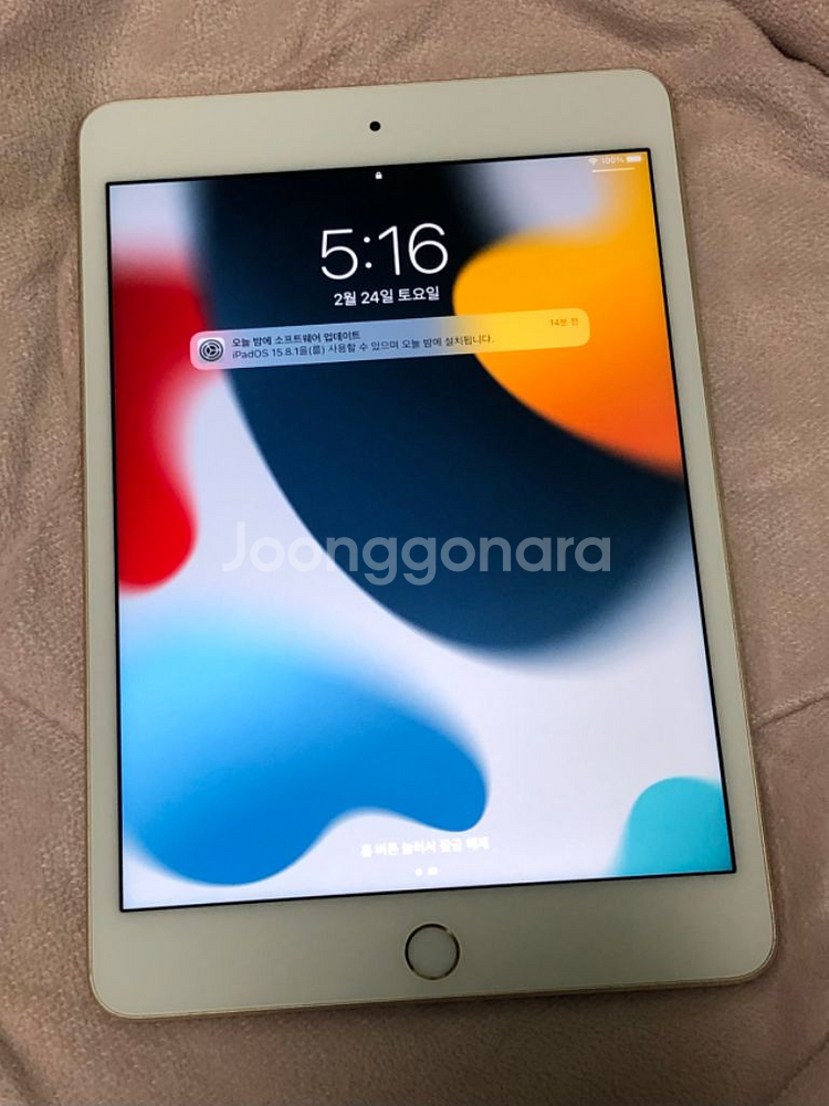 개인정보(거래정보)를 주고받는 행위는 사기에 노출될 수 있으므로 즉시 중고나라로 신고해 주세요아이패드 미니 4 16기가 와이파이입니다 미세한 기스는 있으나 눈에 띄는 하자는 없습니다 배터리 효율은 모르지만 배터리가 좋지 않아서 사용하실 때 충전기 꼽고 사용하시는 거 추천드립니다 다른 기기를 구매하려고 급처합니다!