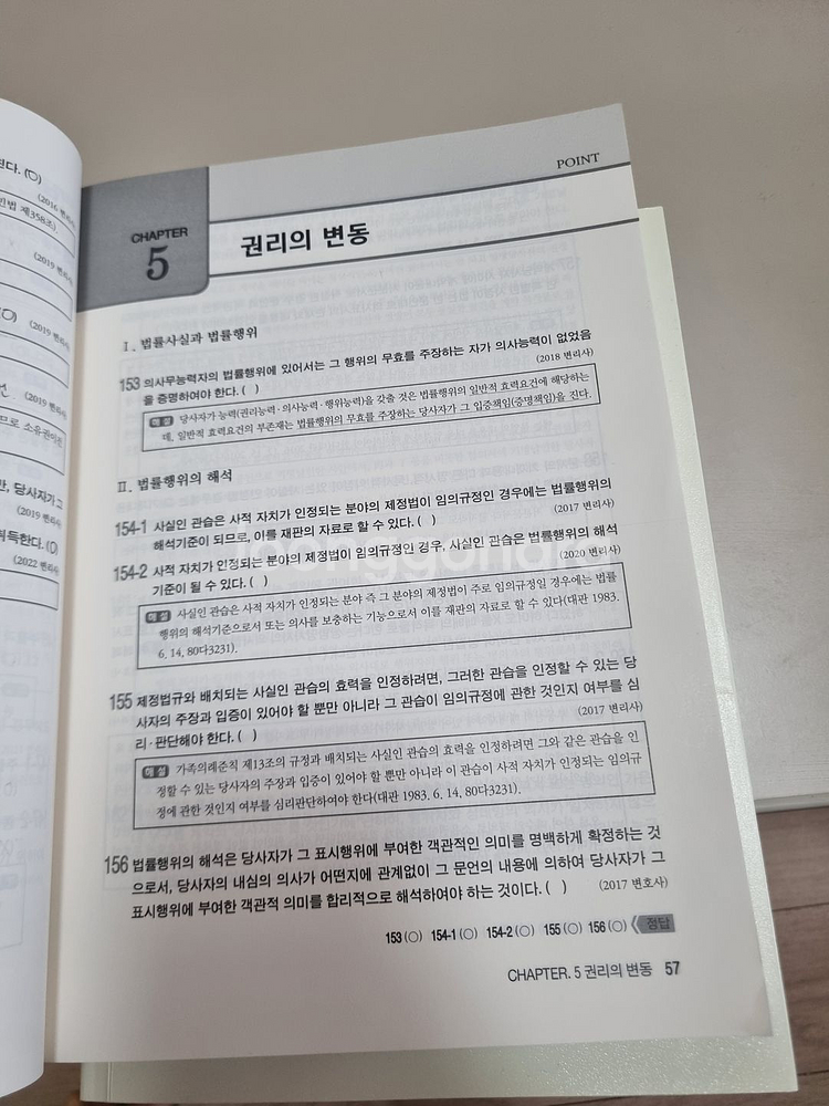 변리사스쿨 류호권 강사님의 포인트 민법 책 판매합니다. 24년 대비 자료이긴 하나 시험 특성상 해마다 책의 변화가 거의 없어 강의 듣는데 문제 없을 것입니다. 3권 구매시 공홈에서 101600원인데, 6만원에 택배비 별도로 판매합니다. 포인트 민법은 88p~121p 까지 필기흔적 있습니다 ox지문집은 56p까지 풀었습니다. 객관식 문제집은 전혀 사용하지 않았습니다.
