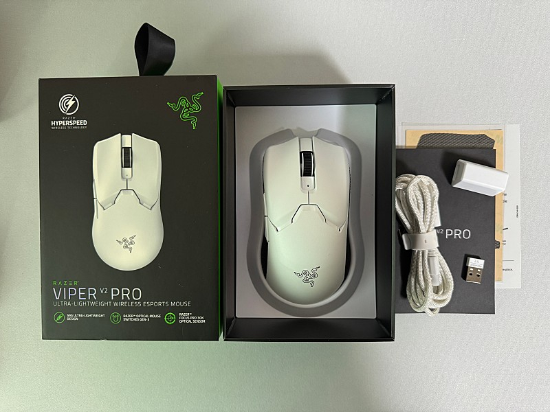 개인정보(거래정보)를 주고받는 행위는 사기에 노출될 수 있으므로 즉시 중고나라로 신고해 주세요레이저 바이퍼 V2 PRO 화이트 유무선 마우스 실사용 1주일 미만이라 거의 새제품 입니다.