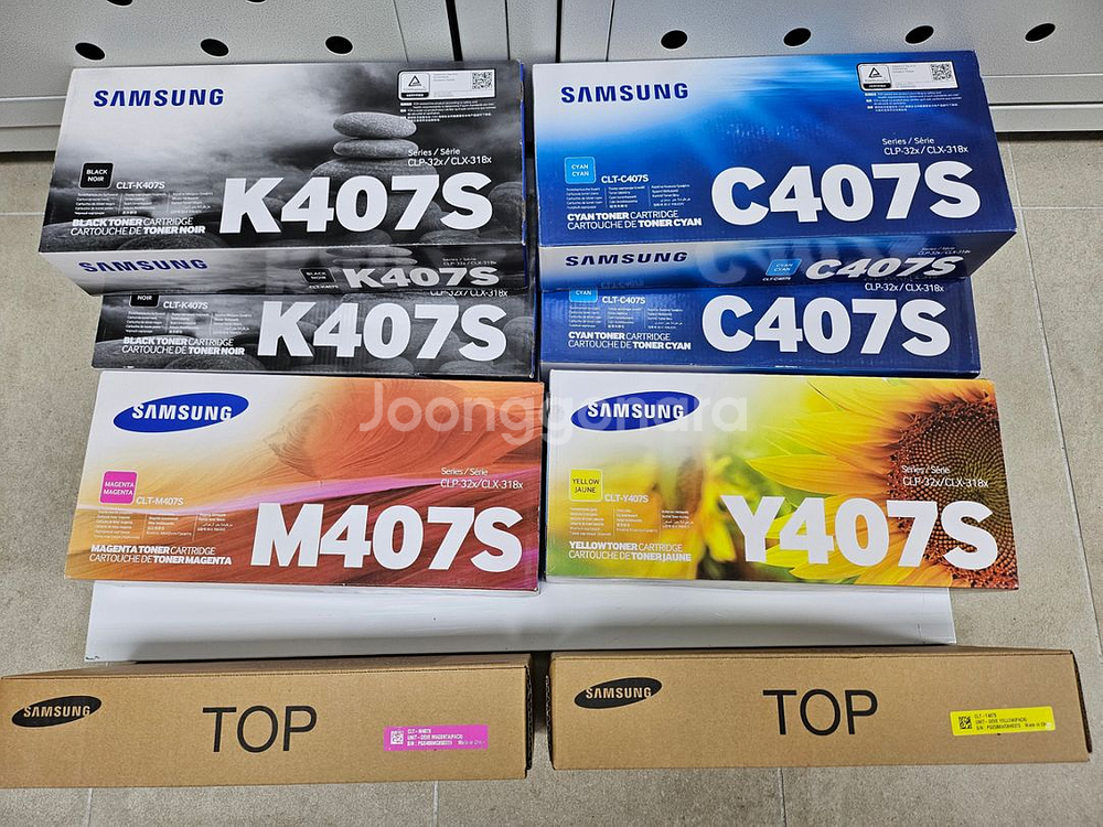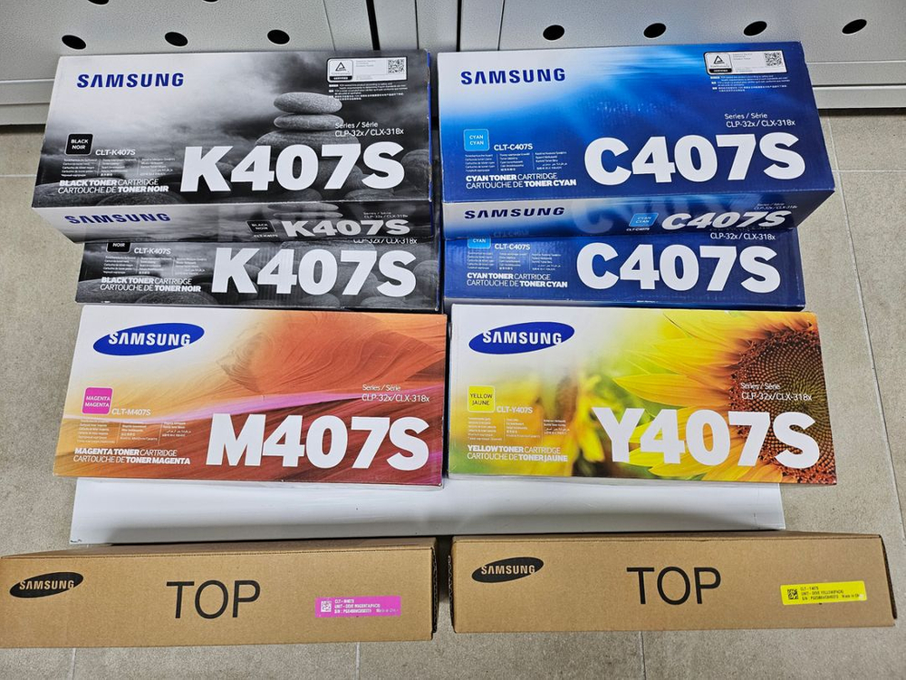 삼성정품 토너입니다. 미개봉이고 총8박스에요! K407S 2개 C407S 2개 M407S 2개 Y407S 2개 일괄 5만에 드려요. 득템하세요ㅎㅎ 직거래 과천갈현동이고 택배는 부피와 무게가 있어서 착불로 보내드려요^^
