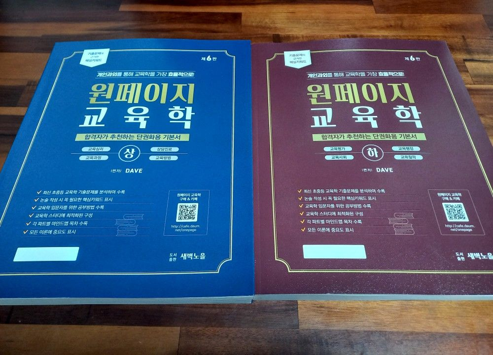 원페이지 교육학 6판 상하 일괄 택포 43000원 필기, 사용감 없는 새 책입니다.
