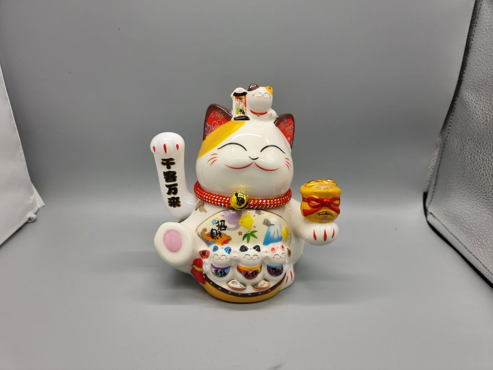 새상품. 손흔드는 마네키네코 복고양이입니다. 손흔드는 작동 불량상품입니다. 다른데는 이상없는 깨끗한 새상품입니다. 매장 디피용으로 굿인 제품입니다. 정상가 58,500원 가로 18 세로 14 높이 20