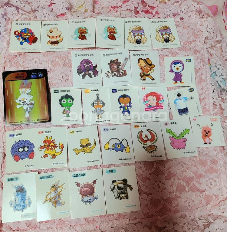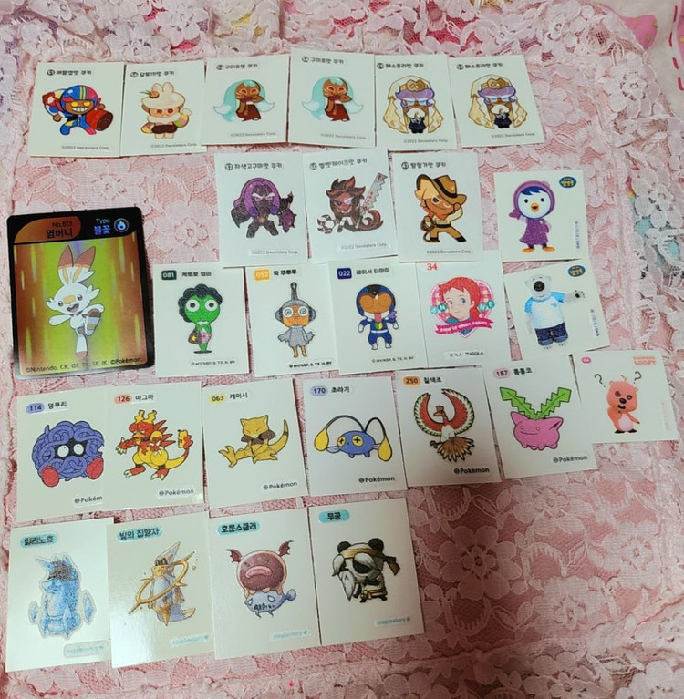 개인정보(거래정보)를 주고받는 행위는 사기에 노출될 수 있으므로 즉시 중고나라로 신고해 주세요띠부띠부씰 종류 상관없이 전부 개당 0.2 포켓몬스터 홀로그램 카드(염버니) 0.3 거래금액 만원이상부터 거래합니다 교환,환불✖ 📦 일택+4500 반택+2500