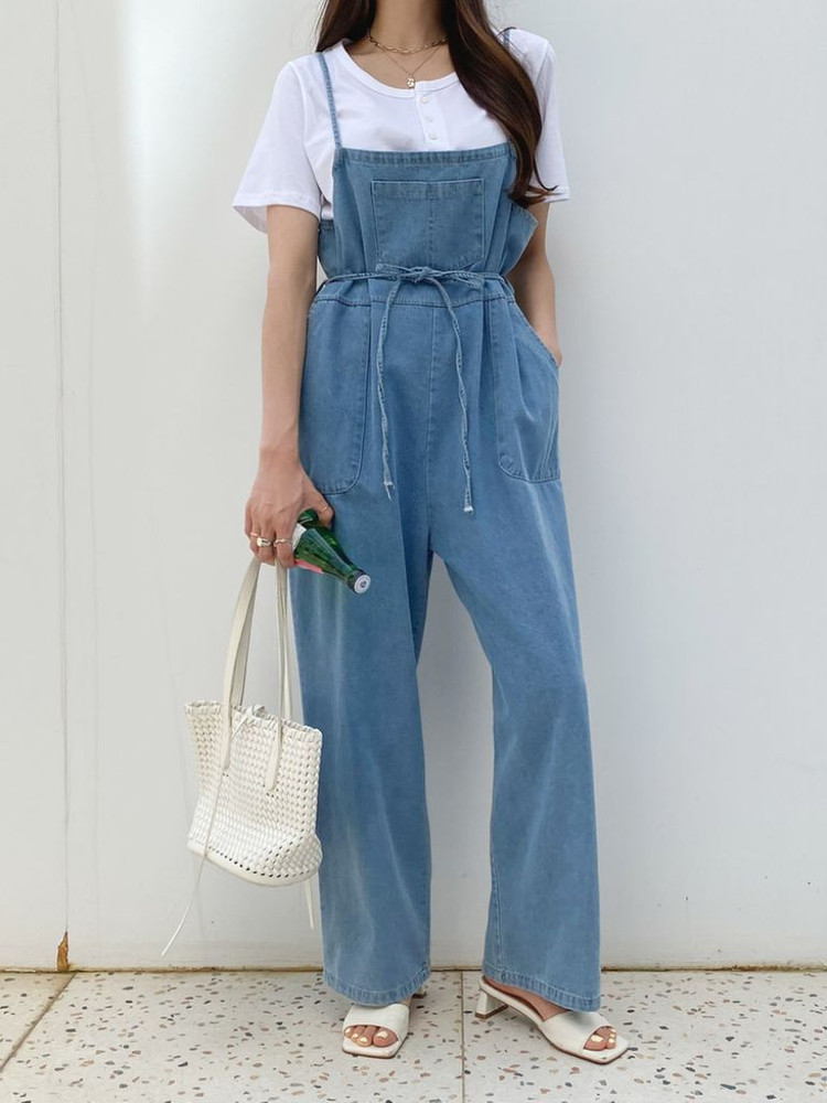 봄 와이드 데님 끈 멜빵바지 프리사이즈 새옷입니다 가슴반품 53cm 총길이 137cm 44~66 추천입니다