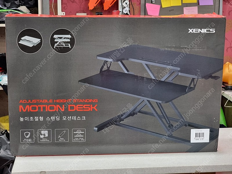 🔺 중고나라 앱은 '네이버페이 포인트 3,000원' 지급 이벤트 중! 자세한 내용은 위 안내를 통해 확인해 주세요. ---------------------------------------------- 미개봉 새상품입니다 오랜시간 책상에 앉아있으면 허리에 무리가 갑니다. 서서 업무를 보고싶은 분을 위한 높이조절형 책상입니다^^ 기존의 책상에 올려 사용하며, 사용자에 맞는 자유로운 높이조절이 가능합니다. 상판15kg, 하판 2kg을 견디는 튼튼함으로 무거운 모니터나 노트북도 걱정없습니다. 상판은 가스스프링 방식으로 누구나 가볍게 들어올릴수있습니다. 색상: 블랙 크기: 상판-800 x 400mm, 하판-650 x 297mm, 높이-110-510mm 문의는 문자메시지로 부탁드립니다 직거래 , 택배거래 모두 가능합니다 이0-4707-1498 위치 : 대전시 관평동 롯데마트 뒷편