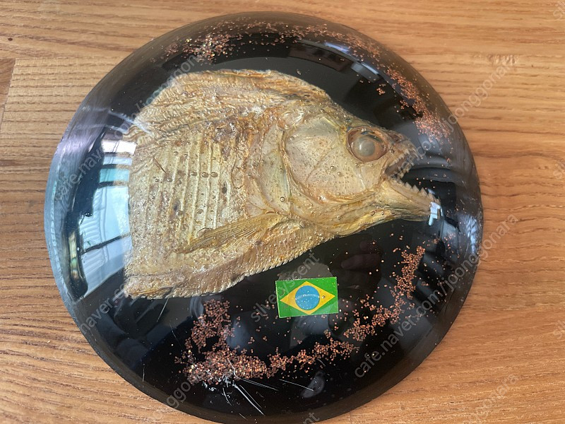 ※ 카페 상품 게시글은 자동으로 중고나라 앱/사이트에 노출합니다. 노출을 원하지 않으실 경우 고객센터로 문의 바랍니다. ※ 등록한 게시글이 회원의 신고를 받거나 이상거래로 모니터링 될 경우 중고나라 사기통합조회 DB로 수집/활용될 수 있습니다. ─────────────────── 📢 제목에 "제조사/ 브랜드 명"과 “상품명(ex. 4단 책장선반)”을 넣어 작성하면, 보다 빠른 판매가 가능합니다! 📢 게시글 작성 시 배송 방법에 “직거래”와 “내 위치” 설정할 경우, 보다 빠른 판매가 가능합니다! 1.상품 : 장식품 브라질 피라냐 박제 전시 2.가격 : 70,000원(택배비별도 : 4,000원) 3.내용 : 브라질에 있는 지인으로부터 선물 받아서 전시해놓다가 판매합니다. 앞쪽 아래부분에 사진과 같이 데미지가 있고 뒷면도 사진과 같습니다. 크기는 지름 약 13cm정도 됩니다. 문자 또는 네이버채팅 바랍니다.