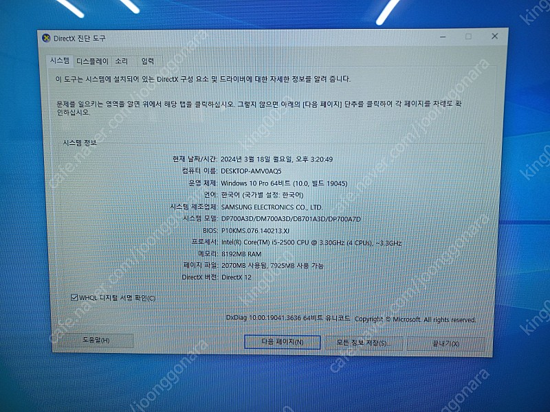 CPU : I5-2500 RAM : 8G VGA : INTEL SSD : 120G OS : WIN10PRO+한글,오피스 액정 : 27인치 그외 : USB3.0,블루투스,웹캠 지원 작동이상없고 WIN10새로설치되어있어 바로 사용가능합니다 본체,어댑터 같이드리며 부산 강서구 직거래만 하겠습니다 인텔 /I5-2500 / (인텔) H61 / DDR3 / 8GB / SSD:120GB / DVD 레코더 / (인텔) HD 그래픽스 / 2채널 / 1Gbps 유선 / 802.11n(Wi-Fi 4) 무선 / 블루투스 / HDMI / 웹캠 / 120W 외장 어댑터 / 윈도우10 / 일체형 / 화면크기: 68cm(27인치) / 1920x1080 / LED 백라이트 / HDTV 수신 / 용도: 사무/인강용