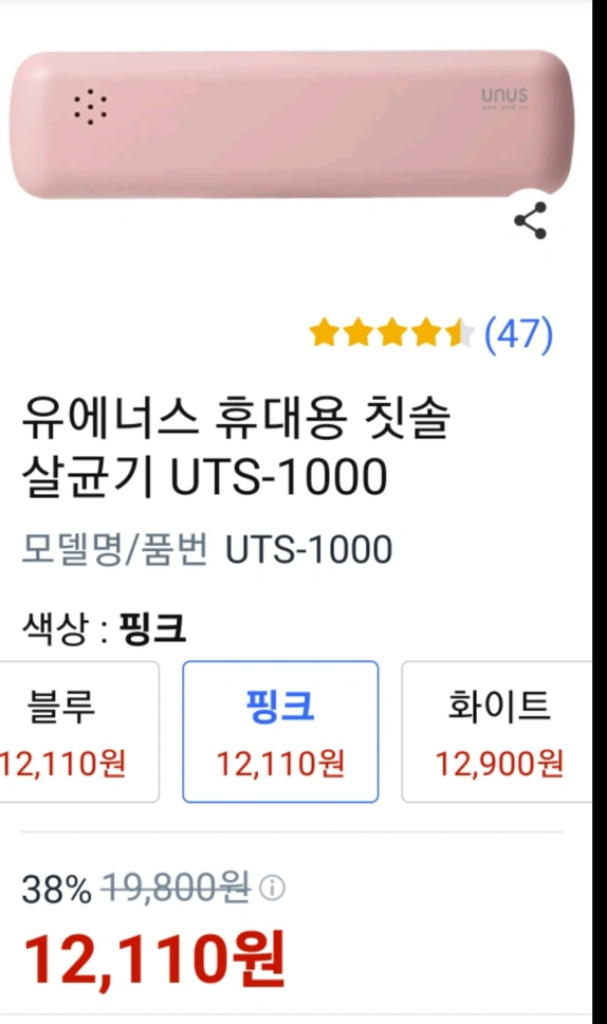 개인정보(거래정보)를 주고받는 행위는 사기에 노출될 수 있으므로 즉시 중고나라로 신고해 주세요아는 지인한테 휴대용 칫솔살균기 3개 받앗는데 사용하질 않아서 내 놓습니다 쿠팡가격으로 보면 개당12.110원이라고 하더라고요~~ AA건전지2개들어가는데 건전지는 별도로 구매하셔서 사용하셔야됩니다 필요하신분은 연락주세용 일괄구매시 2만5천원에 드립니다