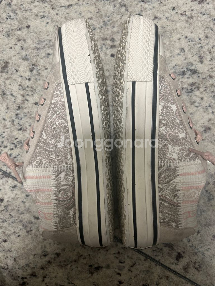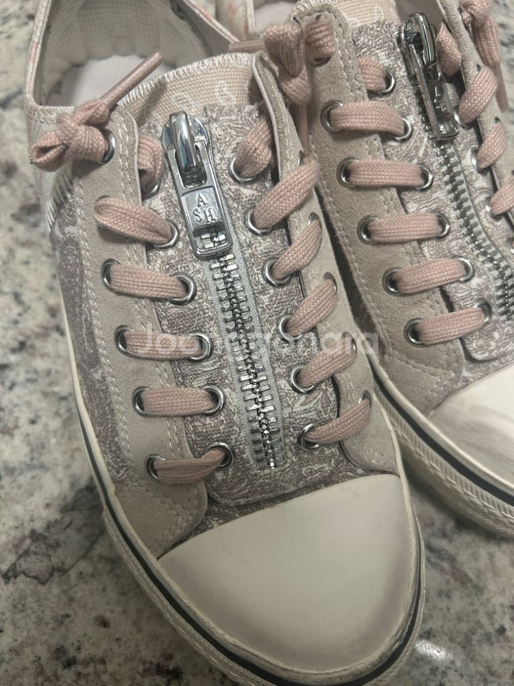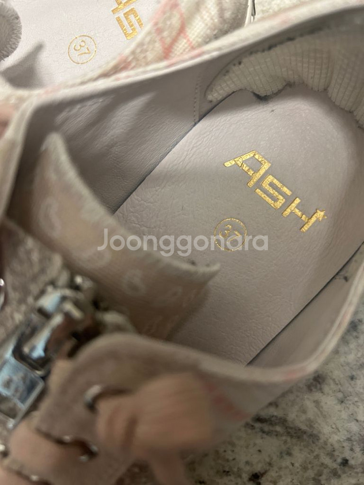 아쉬 베르소/벌소 스니커즈 핑크 37 사이즈 입니다. 37 240 사이즈인데, 정사이즈 240 신는 저는 살짝 커서 뒷꿈치 패드 붙혀서 착용했어요. 스니커즈라도 오래 예쁘게 신으려고 밑창 수선 했고, 생각보다 안신어져서 내놓아요. 정확하게 딱 3번 착용 했어요. 거의 새 스니커즈 컨디션으로 보시면 됩니다. 신발 굽 높이는 3cm 중간 지퍼로 올렸다 내렸다 착용하면 됩니다. 개인간의 거래 특성상 교환 환불이 불가합니다.