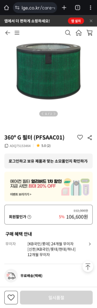 LG 360 공기청정기 필터 2개 세트 미개봉 새상품 정품 팝니다. 사진상 적용가능 모델 있습니다. 인터넷에서 개당 약 10만원 가량 하는 제품입니다. 두개 일괄로 판매합니다. 직거래는 1호선 화서역 근처 가능합니다.