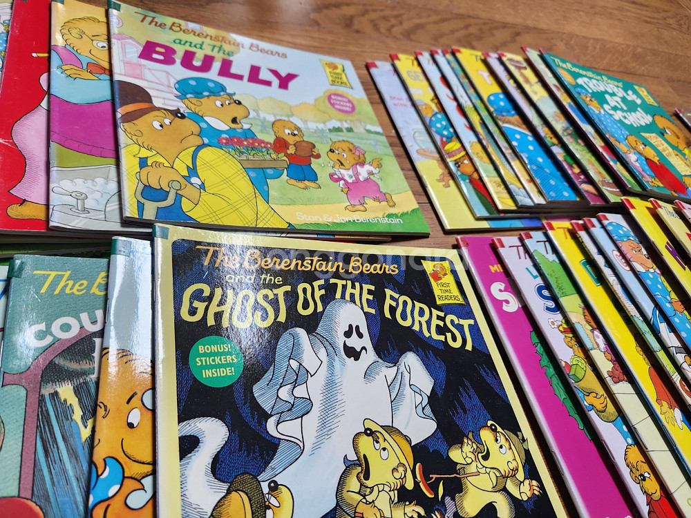 베런스타인 베어스 60권 전권 + 25권 추가구매해서 총 85권입니다. 택포 6만원 berenstain bears 세월의 흔적이 있으나, 내지 표지 큰 손상없이 깨끗한 편입니다. 잠수네영어 4-5단계 정도입니다. J4 J5 초록스티커- 4단계 / 빨강스티커- 5단계 음원은 세이펜활용해서 앞표지 뒷장에 스티커 있습니다. 음원 함께 드릴께요~ 음원번호 01210~ 부터는 음원이 따로 없어서 유튜브에서 추출에서 만들었습니다. *휴일이라 오늘 3시 이후 입금시 택배 마감해서 휴일지나고 5/7일 배송될 수 있습니다.