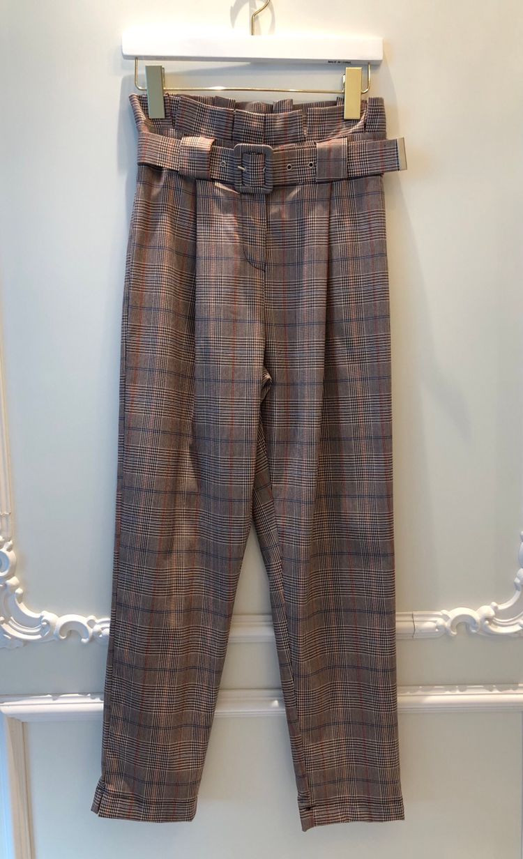 로마 비행갔을때 85유로 주고 사온건데요 ㅜㅜ 저에게는 사이즈가 너무 타이트하기 딱맞아서 사이즈미스로 내놓아요 ㅠㅠ 핀턱, 체크무늬, 벨트까지 너무 완벽하고 예뻐요 .. 라벨 보시면 아시겠지만 메이드인이태리제품 맞구요 ! 이태리 로드샵에서 청남방이랑 입은 샵언니 보고 반해서 산 완전 새상품입니다.. 유럽 사이즈 엑스스몰 입니다^^ 저는 유니클로 청바지 28입습니다.