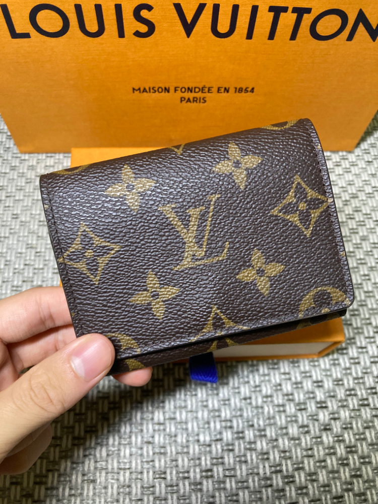 루이비통 엔벨로프 비지니스 카드 홀더입니다:) 쇼핑백과 박스랑 같이 보내드려요! 크림에서 95점제품 구매했습니다! 뒷면에 개체차이로 한부분이 살짝 흐리게 되있어요 더 궁금하신점은 톡 남겨주세요~!
