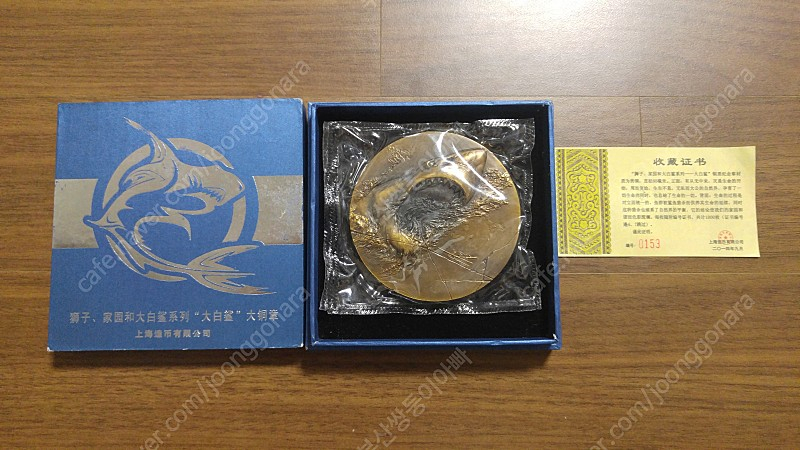 부조감 좋은 중국 제작 동메달입니다. 장식 및 수집용으로 좋습니다. 1. 백상아리 동메달 : 90,000원 직경 80mm / 발행 1,000개 / 작가 한효생 / 제조 상해조폐창 부조감 좋은 상어 도안 동메달입니다. 2. 강아지 동메달 : 90,000원 직경 70mm / 발행 399개 / 작가 왕강호 / 제조 백탁민트 입체감 좋은 강아지 동메달입니다. 3. 공동비상 동메달 : 40,000원 직경 45mm / 발행 2,000개 / 제조 북경금천각 유한공사 도안좋은 동메달입니다. 여기부터는 정식발행되는 동메달과 동일하나 보증서가 없습니다. 복제품이라는 말도있지만, 보증서있는 동메달과 육안으로 구분하기 힘듭니다. 진품유무를 알수없어, 구리 중량으로 수집한다 생각하시면됩니다. 1. 상해조폐창 12간지 시리즈 직경 60미리구요, 상태좋습니다. 개당 1.5만원해서 12개 18만원에 분양합니다. 2. 몽골야생동물 시리즈 유명한 몽골 시리즈입니다. 개당 1만원해서 5개 5만원입니다. 3. 십일면관음 직경 60미리구요, 도안좋습니다. 가격은 2만원입니다.