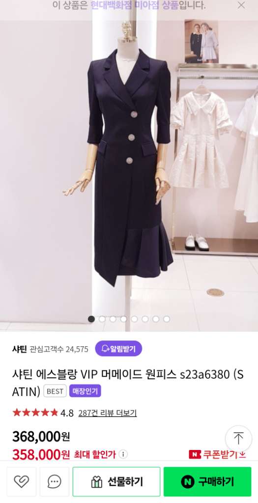 https://m.shopping.naver.com/window-products/department/4686509354?NaPm=ct%3Dlw5szd88%7Cci%3Da63f2ab068faebae153a4de749b6dbd40f9adfb2%7Ctr%3Dsls%7Csn%3D897415%7Chk%3D12f7391f8cda8e107d64bd960e261fcd896edb49#REVIEW 가족행사에 한번착용 했습니다 입었을때 고급지고 이뻐요 주변에서 칭찬을 많이 받았습니다 치마단에 뜯어짐 있습니다 사이즈 66입니다