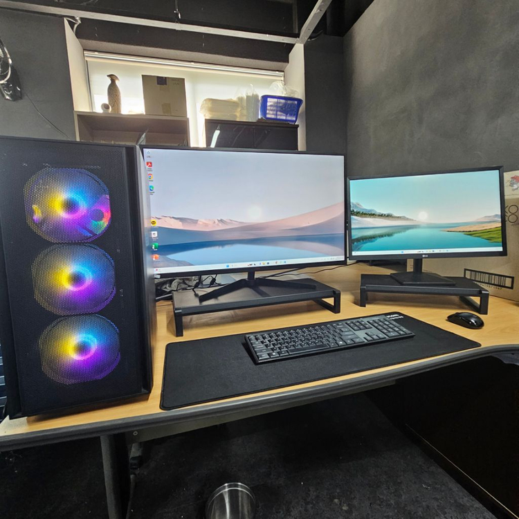 고성능/전문가용 P2 컴퓨터 PC일체 판매해요. 제품명 : 윈도우+모니터+고성능/전문가용 P2 구입일자 : 2023년 3월 구매금액 : 1,662,250원 CPU 10코어 랩터 i5 13400F 4.6G 메인보드 H610H7-M7 D5 메모리 16G 4800MHz (16GB) 그래픽카드 지포스 RTX3060 (12GB) SSD 512G SSD 쿨러 Socoool RC100 RGB 파워 [600W 정격] 케이스 미들타워(D4 MESH 강화유리 블랙) 윈도우 11홈 + 게임패스 모니터 : UDEA EDGE ED3230GFN 유케어 180 홈게임 보조모니터 : LG LED 모니터, 24MK430H [COX]무선 키보드+광마우스[COS100] 키보드마우스 겸용 친환경 장패드 아싸컴에서 1년전에 조립 제품으로 구매했어요. 선만 꽂고 바로 사용 가능해요.