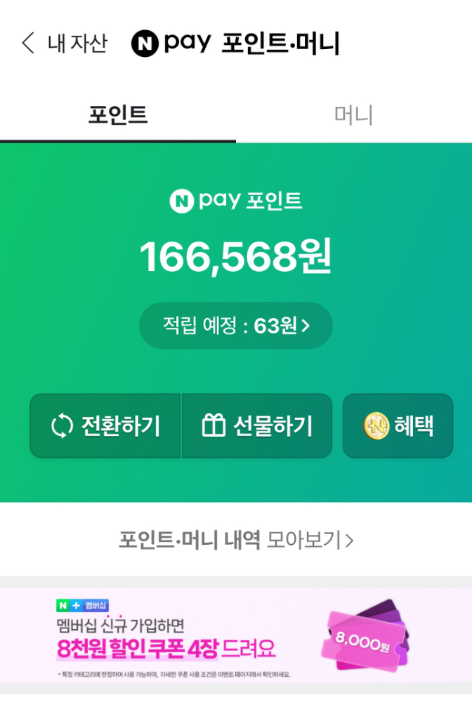 네이버 페이 포인트 160000 14.5에 팝니다 선입만 받아요