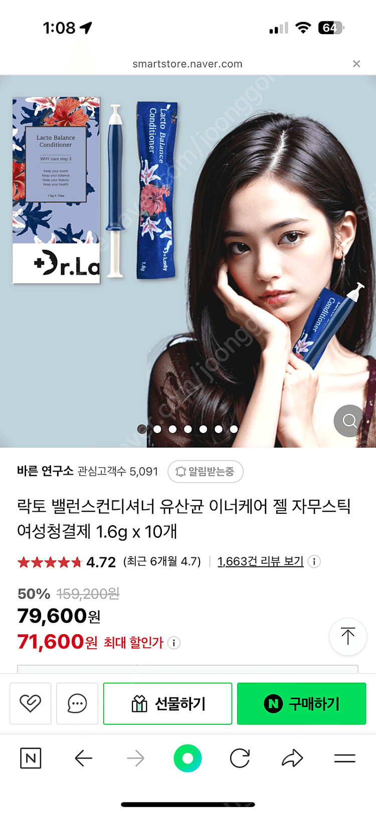 질유산균 10종 고함량 유산균 포함된 여성청결제입니다. 1팩에 10개들어잇고 그중에 1개 사용해서 9개 남음 (개별포장되어있음) 정가 71,600원 저는 세일할때사서 저렴하게 판매해요 사용기한 2025년 11월 17일까지 ※ 카페 상품 게시글은 자동으로 중고나라 앱/사이트에 노출합니다. 노출을 원하지 않으실 경우 고객센터로 문의 바랍니다. ※ 등록한 게시글이 회원의 신고를 받거나 이상거래로 모니터링 될 경우 중고나라 사기통합조회 DB로 수집/활용될 수 있습니다. ─────────────────── 📢 제목에 "제조사/ 브랜드 명"과 "상품명”를 넣어 작성하면, 보다 빠른 판매가 가능합니다! 📢 게시글 작성 시 배송 방법에 “직거래”와 “내 위치” 설정할 경우, 보다 빠른 판매가 가능합니다! ※ 카페 상품 게시글은 자동으로 중고나라 앱/사이트에 노출합니다. 노출을 원하지 않으실 경우 고객센터로 문의 바랍니다. ※ 등록한 게시글이 회원의 신고를 받거나 이상거래로 모니터링 될 경우 중고나라 사기통합조회 DB로 수집/활용될 수 있습니다. ─────────────────── 📢 제목에 "제조사/ 브랜드 명"과 "상품명”를 넣어 작성하면, 보다 빠른 판매가 가능합니다! 📢 게시글 작성 시 배송 방법에 “직거래”와 “내 위치” 설정할 경우, 보다 빠른 판매가 가능합니다!