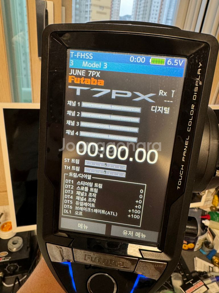 futaba 7px 판매합니다 수신기 신품 배터리는 없고, 휠에 스펀지 경회되어 버려서 새로 구매하시면 됩니다. 그외에는 액정 필름 붙여 사용해 대체적으로 양호합니다