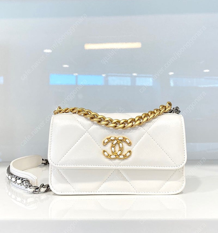 아름답고 여성스러운 화이트 샤넬백 샤넬 19 체인 플랩 크로스백이 워너비럭스에 입고되었습니다_🤍 스마트 스토어 상세사진 : - 23년 백화점 구매, 전시급, 전반적으로 깔끔함[내장칩 - 최신버전] - 구성품: 본품, 더스트백, 북렛, 인보이스, 구매 영수증[개인정보 절삭] - 명품감정원 정품보증서 포함 ✔ 현재 인터넷 구매가 : 650만 원대 워너비럭스에서 합리적인 가격에 만나보셔요 🙏 -모델명- #CHANEL AP3067 -상세 사이즈- 가로 17.3cm x 세로 10cm x 너비 3.5cm -원산지- 이탈리아 + 상품마다 제조국이 상이할 수 있습니다. -색상/소재- 화이트 & 골드 / 램스킨 [양가죽] 🤍 * 현금 결제 시 현금영수증 발행 가능 * 계좌이체 시 할인됩니다. * 구매관련 및 매입문의 : 카카오톡 : 워너비럭스 * 판매중인 상품은 검수완료된 100% 정품입니다. * 모든 상품_ 중고 명품으로 1개의 재고만을 보유하고 있습니다. * 첨부된 사진은 저희 워너비럭스에서 직접 촬영한 사진으로 사진 무단 사용 적발 시 강력히 법적 대응하겠습니다. * 인스타그램 : @WANNABELUX_ "워너비럭스" 검색