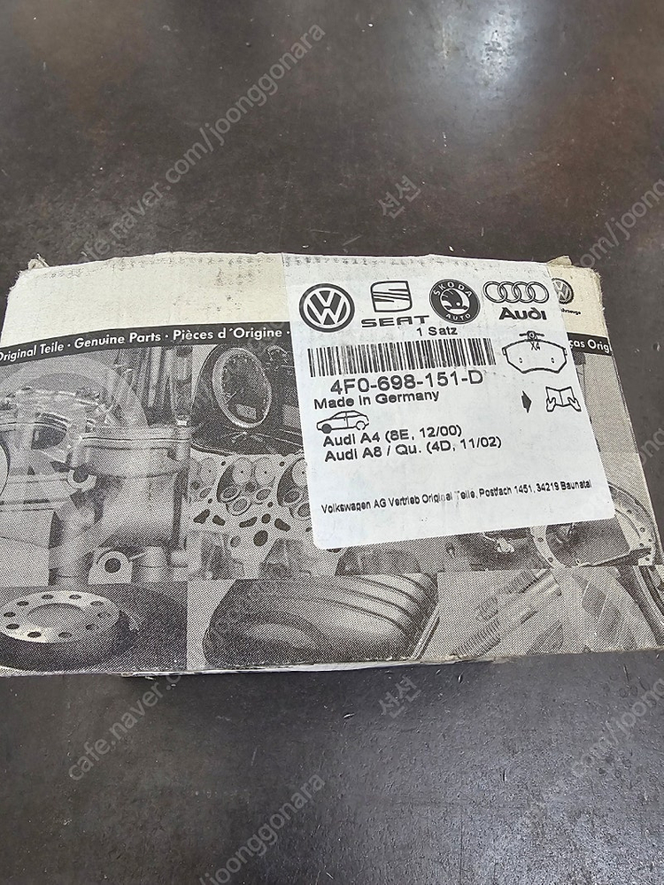 ※ 카페 상품 게시글은 자동으로 중고나라 앱/사이트에 노출합니다. 노출을 원하지 않으실 경우 고객센터로 문의 바랍니다. ※ 등록한 게시글이 회원의 신고를 받거나 이상거래로 모니터링 될 경우 중고나라 사기통합조회 DB로 수집/활용될 수 있습니다. ─────────────────── 📢 제목에 "제조사/ 브랜드 명"과 "차종(ex. 아반떼 CN7)”를 넣어 작성하면, 보다 빠른 판매가 가능합니다! 📢 게시글 작성 시 배송 방법에 “직거래”와 “내 위치” 설정할 경우, 보다 빠른 판매가 가능합니다! 아우디 05~13년식 차량(품번 검색요망) A4 A6 TT 차량 프런트 브레이크 패드입니다. 센서달린 정품패드 싸게팝니다