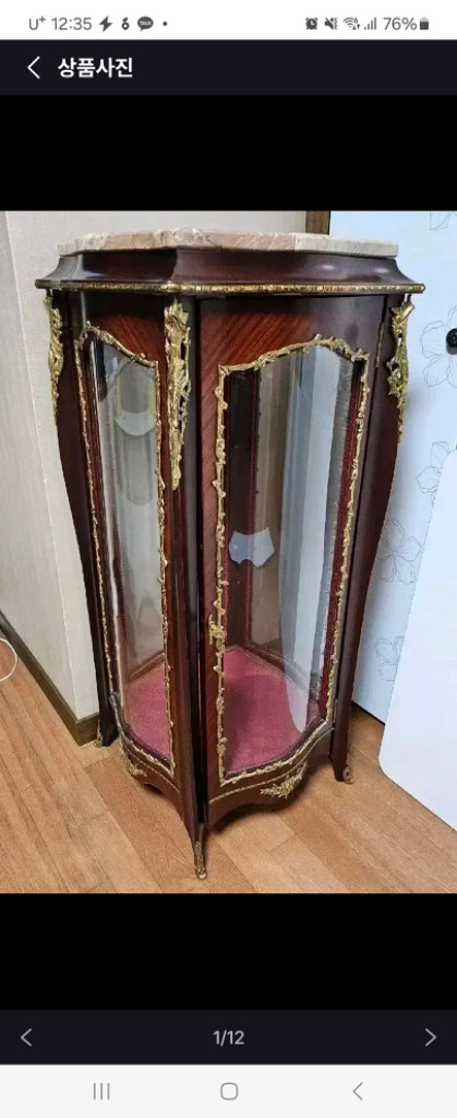 엔틱 가구 중에서도 화려하고 귀한 루이15세 때 양식으로 진짜 엔틱 가구 입니다. 직접 가져가셔야해요 부천 신중동역 부근에 위치해 있습니다. 위에 대리석은 원래없는데 제작해서 더욱 고급스럽고 외부 유리는 라운드 형태로 고가 제품 입니다. 사진처럼 내부 유리선반 없이 큰 장식품을 넣으셔도 되고, 유리장을 얹을 수 있는 받침대가 있어서 유리제작하시면 3단으로 사용하실 수도 있습니다
