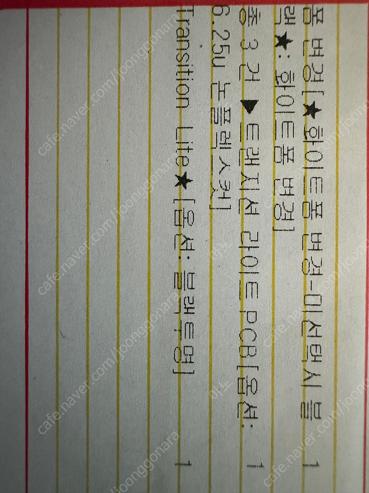 ※ 카페 상품 게시글은 자동으로 중고나라 앱/사이트에 노출합니다. 노출을 원하지 않으실 경우 고객센터로 문의 바랍니다. ※ 등록한 게시글이 회원의 신고를 받거나 이상거래로 모니터링 될 경우 중고나라 사기통합조회 DB로 수집/활용될 수 있습니다. ─────────────────── 📢 제목에 "제조사/ 브랜드 명"과 "상품명(ex. 맥북 에어 13)”를 넣어 작성하면, 보다 빠른 판매가 가능합니다! 📢 게시글 작성 시 배송 방법에 “직거래”와 “내 위치” 설정할 경우, 보다 빠른 판매가 가능합니다! 스웨그키 트랜지션 라이트 팝니다. 트랜라 베어본: 블랙투명, 화이트폼 변경 기판포함 이번 물량때 구매했는데 네오80쓰려고 박스 뜯지도 않고 그대로입니다. gs편의점 배송시 천원빼드려요. 연락주세요!