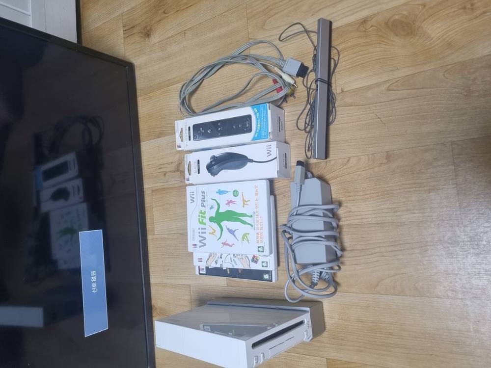 닌텐도 위 게임기 판매합니다. 사진과 같이 정상작동됩니다. ■ 구성 - 게임기 본체 - 컨트롤러 2개 / 눈차크 2개 - 센서, AV단자, 전기선 - 게임CD 3개 중고상품으로 반품, 환불 어려우니 신중한 고민 부탁드립니다.