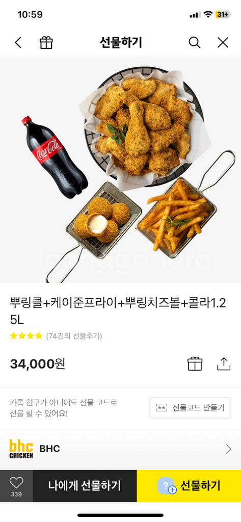 BHC 제품이며 유효기간 10월19일까지 기간 많습니다 7천원 할인해서 팜니다 치즈볼에 콜라 무료로 먹는거입니다