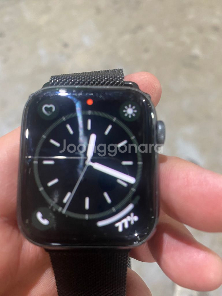 애플워치 5입니다 효율이 74입니다 하루반나절까지는 문제없습니다 급하게 팔게되어 올립니다 직거래 서구청역입니다 박스 충전기 같이 드려요