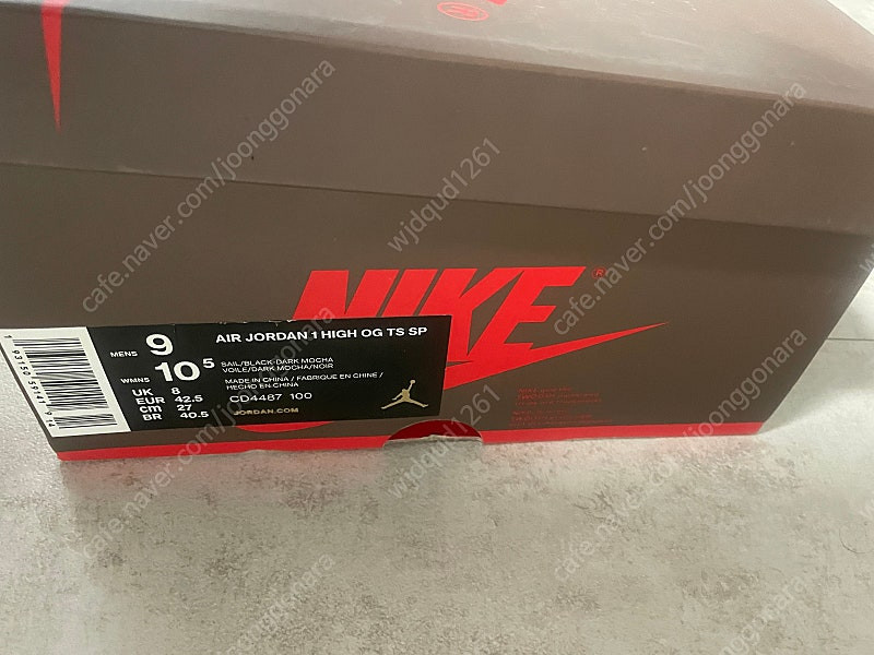 👆 중고나라에도 앱이 있다는 것을 아시나요? 위에 다운로드 링크를 통해 중고나라 앱을 다운로드해주세요. ─────────────────── 1. 제품명/브랜드: 조던 트레비스 스캇 모카 하이 270 2. 상품 상태(미개봉/중고): 시착만 한 새제품 3. 구매 시기: 2023년 1월 4. 하자 유무(유/무): 무 5. 상품 설명: 나매에서 시착만 한 새제품 구입하여 밑창보강 후 말리다가 시착도 안해보고 그대로 다시 박스에 넣어서 보관함.