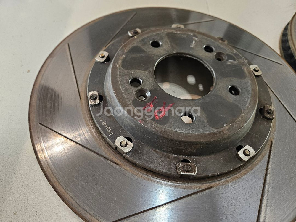 인터알 플로팅 디스크 로터 중고 판매합니다. 변형이 있어 한번 연마쳤고 또다시 변형이 와서 새로 구매하여 기존에 쓰던 제품 판매합니다. 기존 두께 30T에서 현재 두께 28T 나오네요. 핀타입보다 열방출에 좋은 플로팅 타입이고, 스팅어, G70등에 사용 가능합니다. 350mm, 30T 사양이며 저는 하드론 ZS조합으로 사용했었습니다. (제생각엔 패드때문에 변형이온듯 합니다ㅠㅠ) 한번 연마친거 감안하고 한번더 연마쳐서 사용하실분만 사시기 바랍니다. 중고특성상 반품은 어렵고, 쿨거래 시 네고 해드립니다.