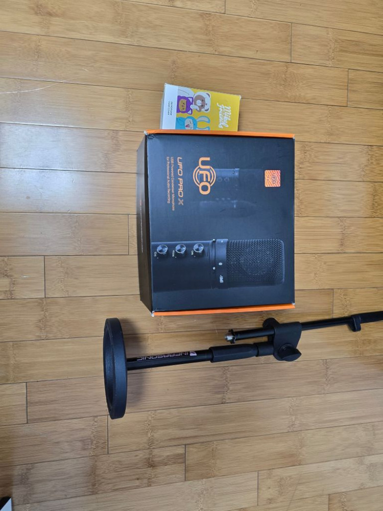 ufo pro x 판매 합니다 구성품 마이크 풀박스 마이크 스탠드 마이크 잡음 먼지 커버 스펀지 입니다 사진 보시면 사용한적 별로 없어서 마이크 상태 s급 깨끗 합니다 사진에 보이는 종이 박스가 살짝 구겨져 짐 스텐드 배송올때 살짝 기스 그외 초s 급입니다 사진에 첨부 했습니다 직거래 7만 택포7.5