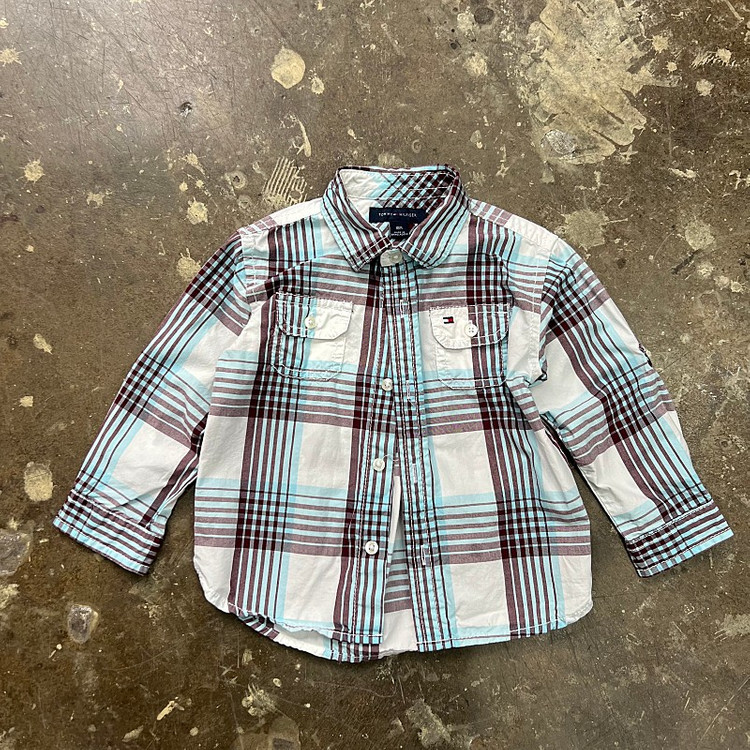 372 타미힐피거 키즈 체크 셔츠 남방 입니다 심플한 디자인이 너무 좋은 옷이에요 입었을 때 핏도 좋구요 깔끔하면서 호불호 없이 누구에게나 잘 어울려요 다용도로 활용해서 입기도 좋습니다 캐주얼 하기도 하구요 소매 단을 접어서 단추로 고정해 반팔 셔츠처럼 만들수도 있도록 되어 있어요 18M 사이즈 입니다 어깨 27 가슴 30 총장 36cm 입니다 아껴입어서 상태도 좋아요 옷장정리하면서 저렴히 판매합니다 택배는 반품 안되고 착불 선불은 4000원 추가입니다 구매하실 분 만 연락주세요 직거래는 춘의역 가능합니다 안심번호로 문자주세요