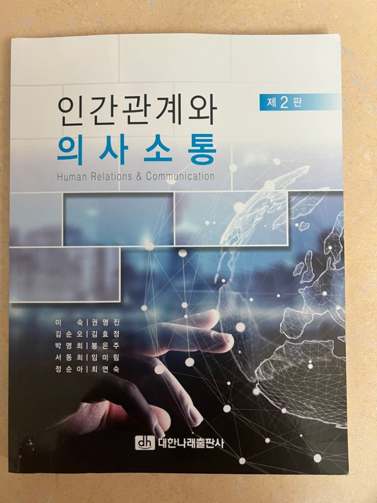 교재명: 인간관계와 의사소통 출판사: 대한나래출판사 1~2페이지 밑줄 외 깨끗한 새 책입니다.