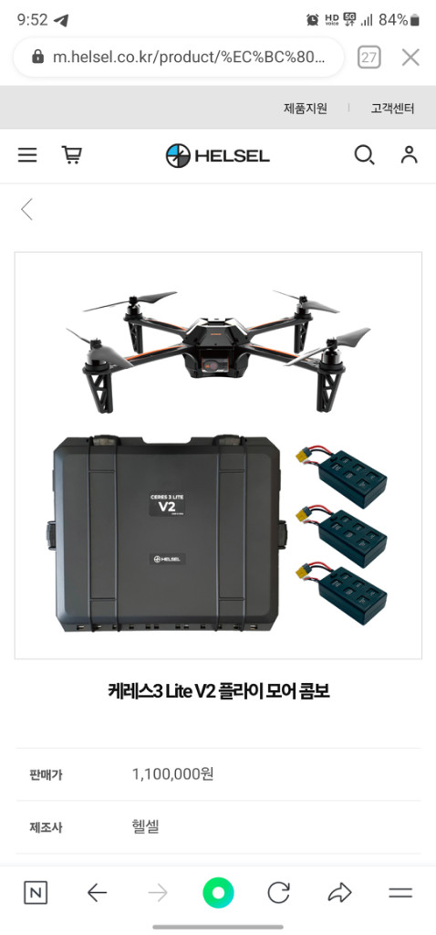 헬셀회사의 케레스3 lite 플레이모어 콤보 입니다. https://m.helsel.co.kr/product/%EC%BC%80%EB%A0%88%EC%8A%A43-lite-v2-%ED%94%8C%EB%9D%BC%EC%9D%B4-%EB%AA%A8%EC%96%B4-%EC%BD%A4%EB%B3%B4%E3%85%A4/32769/category/4627/display/1/#start 배터리 3개, 날개 3세트, 충전기, 및 이동용 박스까지 풀 세트인 제품입니다. 기능확인하면서 1회 물 500미리 달고 1회(점검) 총 2회 날려본게 전부이며 드론은 샀지만 낚시장비까지 구매하려다 작작 하라는 소리를 듣고 눈물의 처분 실시합니다...