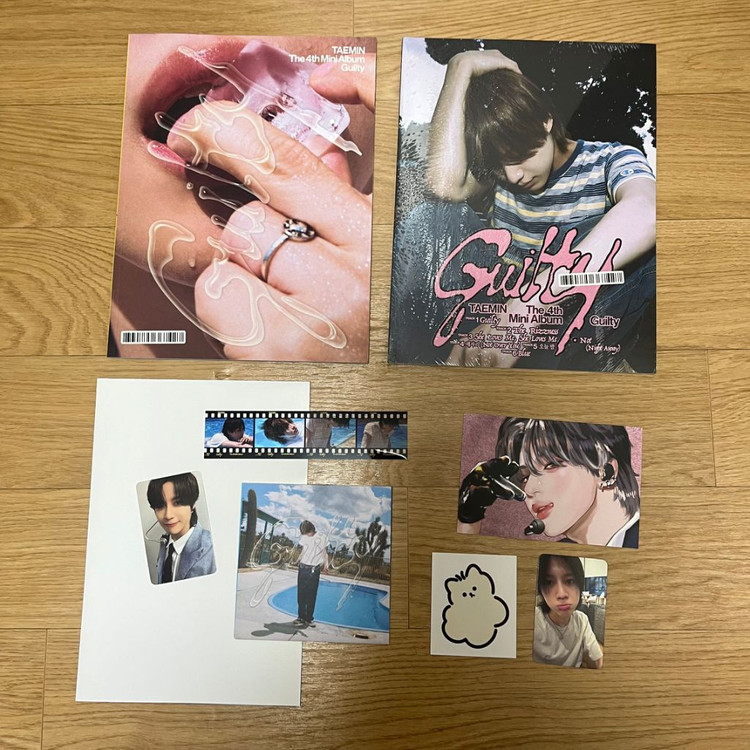 태민 길티 2종 왼쪽 개봉, 구성품 전부 포함 오른쪽 미개봉 상태 +애플뮤직 특전 엽서, 스티커, 특전포카 3종 일괄로만 판매합니다 에눌 및 가격조정 불가합니다! gs반값택배 +2300 일반택배 +3300 별도 (박스포장으로 발송, 부피와 무게있어요) 계좌거래만 합니다