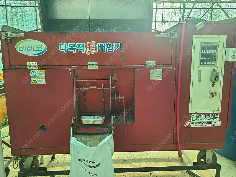대동 톱밥 배합기 현재 380볼트 사용중 성능 짱짱 배합기 세트인 철재 계단과 배합기 받침대 모두 드림. 먼지가 좀 끼어서 깨끗해 보이지는 않으나 사용은 많이 하지않았음. 위치는 경남 양산 웅상지역 연락처 01ㅇ - 구6ㅣI - 사6칠O