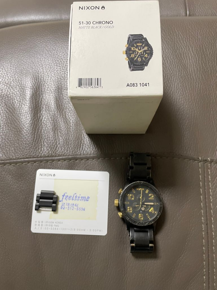 개인정보(거래정보)를 주고받는 행위는 사기에 노출될 수 있으므로 즉시 중고나라로 신고해 주세요닉슨 51-30 크로노 시계 팝니다 예전 이승기 시계로 유명했으며 사이즈 큽니다 박스, 정품인증서, 여분시계줄 풀셋으로 있습니다 사용감 있으며 기스 존재 합니다(사진 확인) 배터리 교체하면 정상 작동 합니다