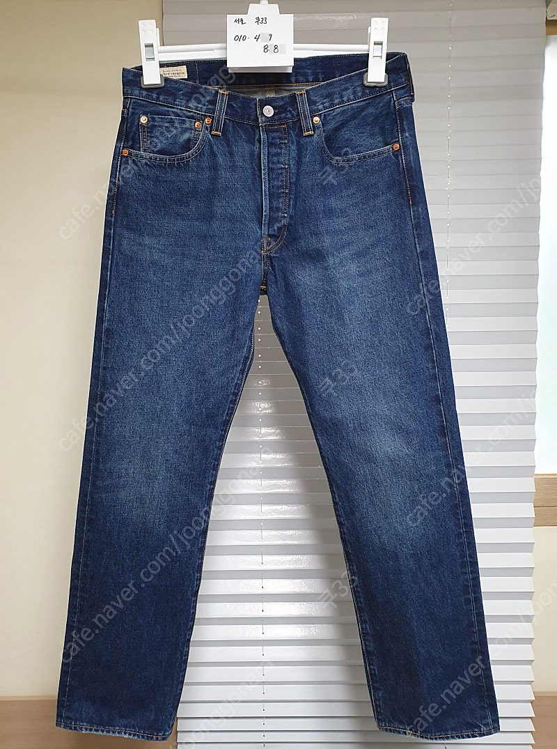 ※ 카페 상품 게시글은 자동으로 중고나라 앱/사이트에 노출합니다. 노출을 원하지 않으실 경우 고객센터로 문의 바랍니다. ※ 등록한 게시글이 회원의 신고를 받거나 이상거래로 모니터링 될 경우 중고나라 사기통합조회 DB로 수집/활용될 수 있습니다. ─────────────────── 📢 제목에 "제조사/ 브랜드 명"과 “상품명(ex. 숄더 핸드백)”을 넣어 작성하면, 보다 빠른 판매가 가능합니다! 📢 게시글 작성 시 배송 방법에 “직거래”와 “내 위치” 설정할 경우, 보다 빠른 판매가 가능합니다! 리바이스 501 오리지널 셀비지 진 W32 L30 판매합니다. 색상은 Blast Of Blue Selvedge - Dark Wash No Stretch 이며 올해 6월 미국 공홈에서 직구한 제품으로 1회 착용 후 보관만 한 상태입니다. 리바이스 코리아에서 판매중 인 "501® 오리지널 셀비지 진 (00501-3544)"과 동일한 제품으로 인심만 30인치 (77cm)라고 보시면 됩니다. (리바이스 코리아 제품는 32인치) 그외 총장 약 105cm, 허리단면 42cm, 허벅지 30cm, 밑단은 20cm 정도 입니다 (실측치 특성 상, 약간의 오차는 감안해주세요) 판매금액은 택비포함 8만원이며 택배거래시 반품은 불가합니다. 직거래는 서울 용산 도원 삼성래미안 아파트쪽에서 가능하고 직거래시 택배비는 빼드립니다.