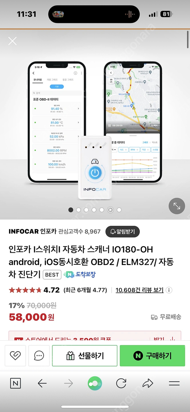 ※ 카페 상품 게시글은 자동으로 중고나라 앱/사이트에 노출합니다. 노출을 원하지 않으실 경우 고객센터로 문의 바랍니다. ※ 등록한 게시글이 회원의 신고를 받거나 이상거래로 모니터링 될 경우 중고나라 사기통합조회 DB로 수집/활용될 수 있습니다. ─────────────────── 📢 제목에 "제조사/ 브랜드 명"과 "차종(ex. 아반떼 CN7)”를 넣어 작성하면, 보다 빠른 판매가 가능합니다! 📢 게시글 작성 시 배송 방법에 “직거래”와 “내 위치” 설정할 경우, 보다 빠른 판매가 가능합니다! 개봉 후 1회 사용했고 박스 그대로 있어요. 인천 주안동 구월동 직거래 또는 택배(착불) 위 안심번호로 연락주세요.